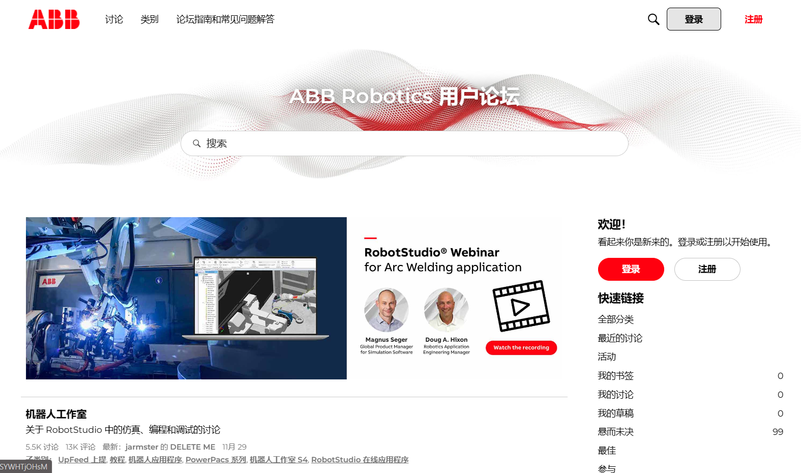 ABB Robotics User Forums是ABB机器人用户官方论坛,专为ABB机器人用户提供一个讨论、交流和解决技术问题的平台。论坛内容涵盖了RobotStudio模拟、编程、调试、软件开发、控制器设置、协作机器人等多个方面。