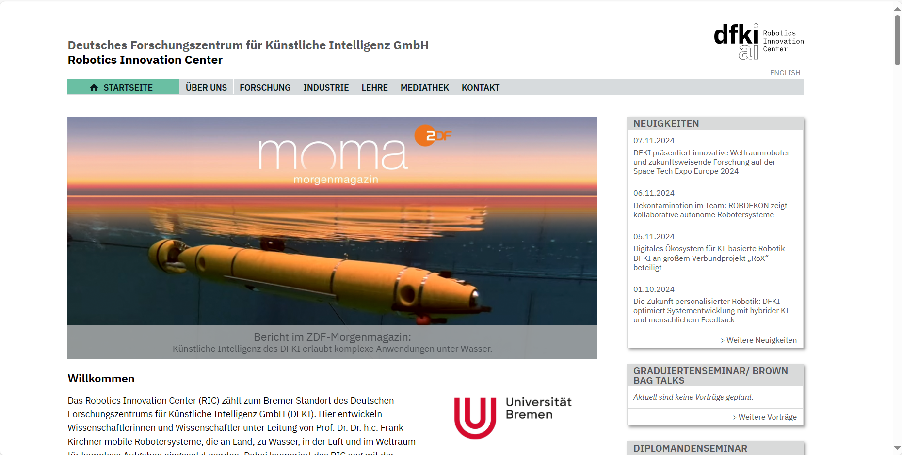 DFKI Robotics Innovation Center是德国不来梅的机器人创新中心,隶属于德国人工智能研究中心(DFKI)。该中心专注于机器人技术的研究与开发,涉及领域包括人工智能、机器人学和安全系统。