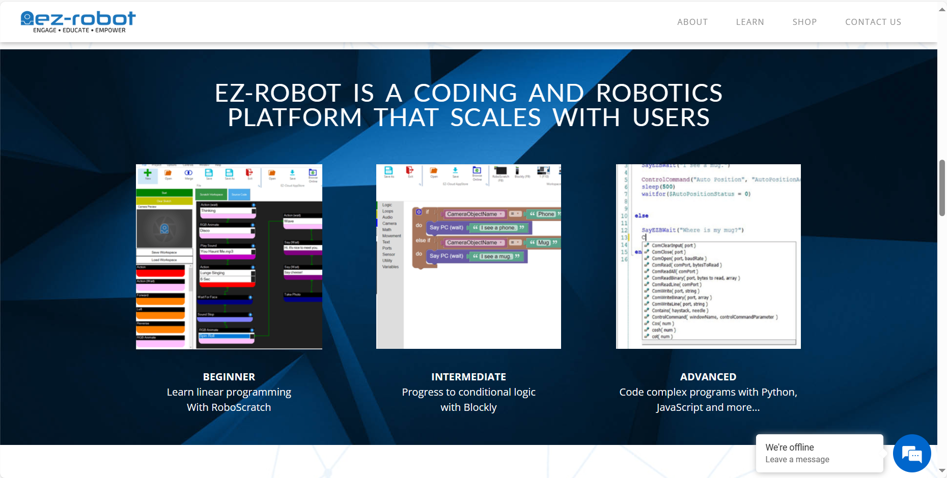 - 适应不同学习阶段:从线性编程到条件逻辑,再到复杂的程序编码,EZ-Robot都能满足不同学习阶段的需求。