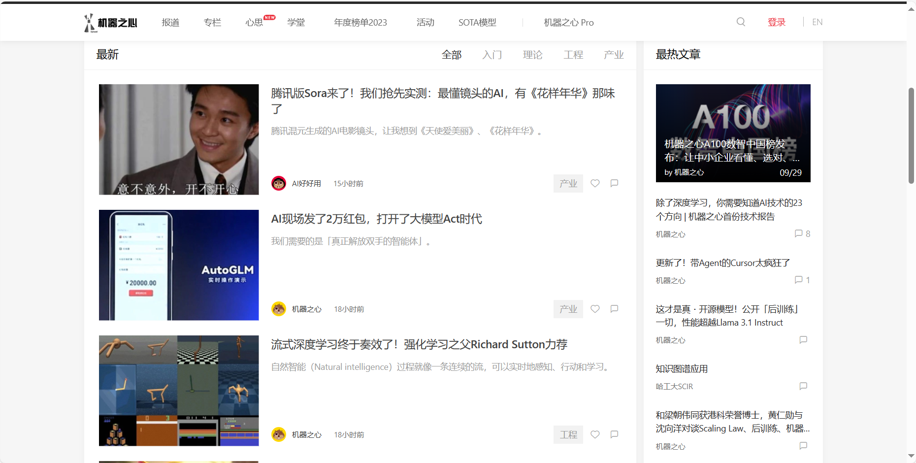 机器之心是一个提供企业人工智能服务的平台,专注于报道和分析人工智能领域的最新动态、技术进展和行业趋势。网站内容覆盖了从强化学习、AI竞赛、模型扩展测试到具身智能等多个方面,旨在为AI领域的专业人士、研究人员和爱好者提供深入的行业洞察和技术趋势。